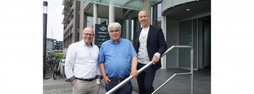 | Die Geschäftsführer Frank Gäfgen (Mobilität, links) und Sebastian Jurczyk (Energie, rechts) mit Aufsichtsratschef Walter von Göwels Quelle: E&M / Volker Stephan |