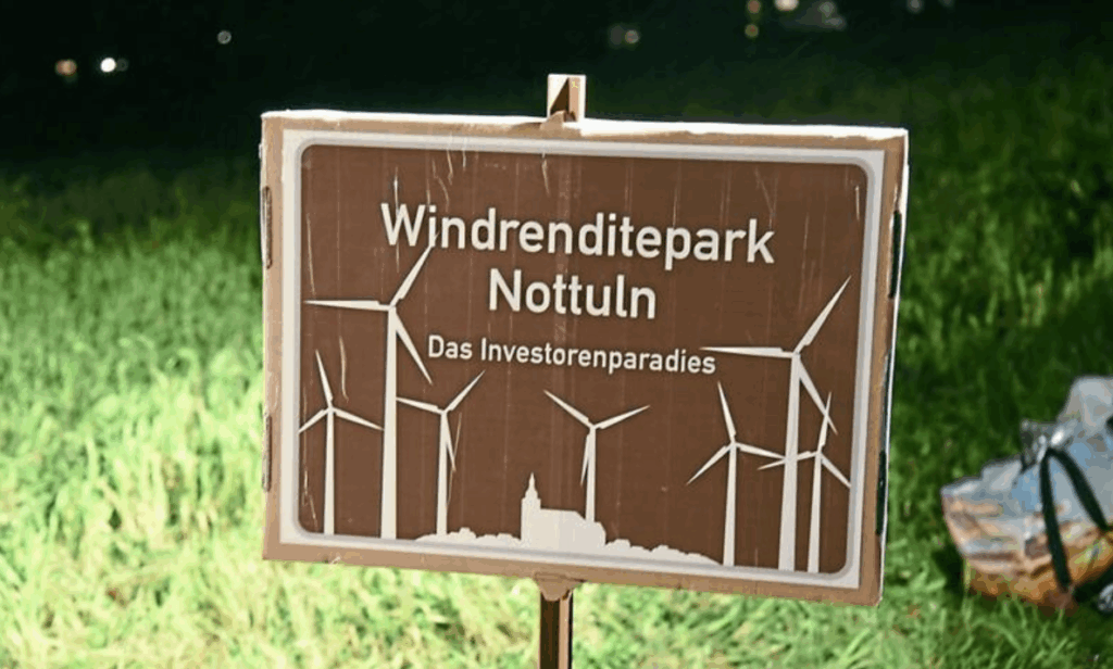 Als schade bezeichnet es die Initiative, dass der Landrat an der Windmesse nicht teilgenommen habe. Fakt bleibe, dass auch die sieben Windriesen von 266 Meter Höhe absolut nicht den Klimazielen Nottulns, sondern nur und ausschließlich der Erweiterung des WEA-Portfolios der Stadtwerke Münster dienten. Axel Winkler: „Der Vorbescheid liegt beim Landrat auf dem Tisch, und wir als Initiative bitten ihn nochmals und immer wieder inständig, diesen Wahnsinn zu beenden und den Bescheid zurückzuziehen. Es liegt in seiner Hand.“